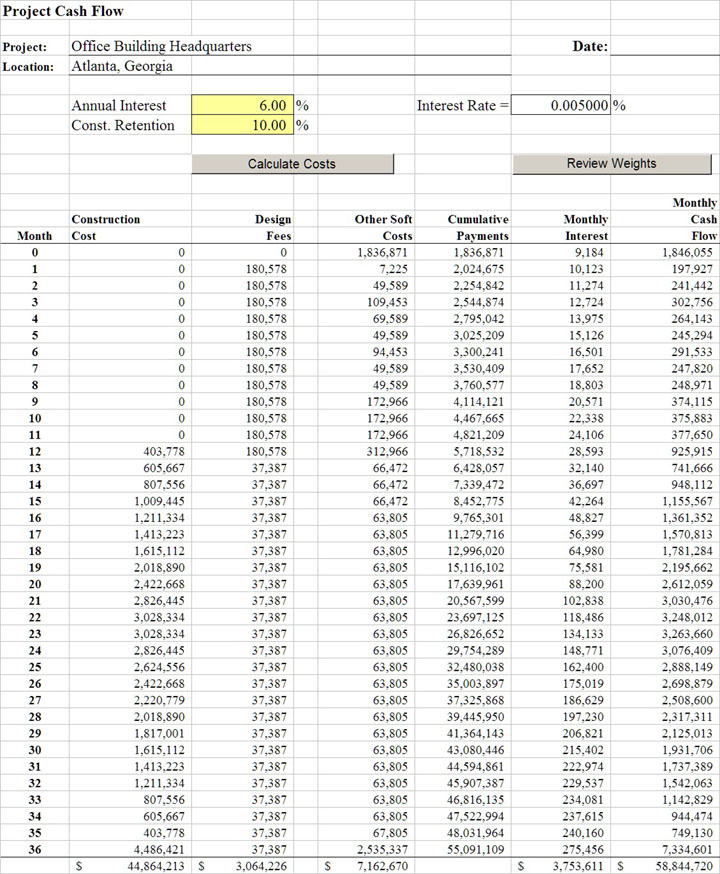We milestone an overall development schedule for design, construction and delivery of the space. This serves as our foundation to estimate soft costs and cash flow.