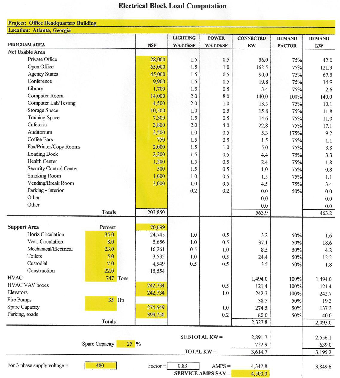 Electrical load is a function of the amount and type of program area, support space, and special program requirements.